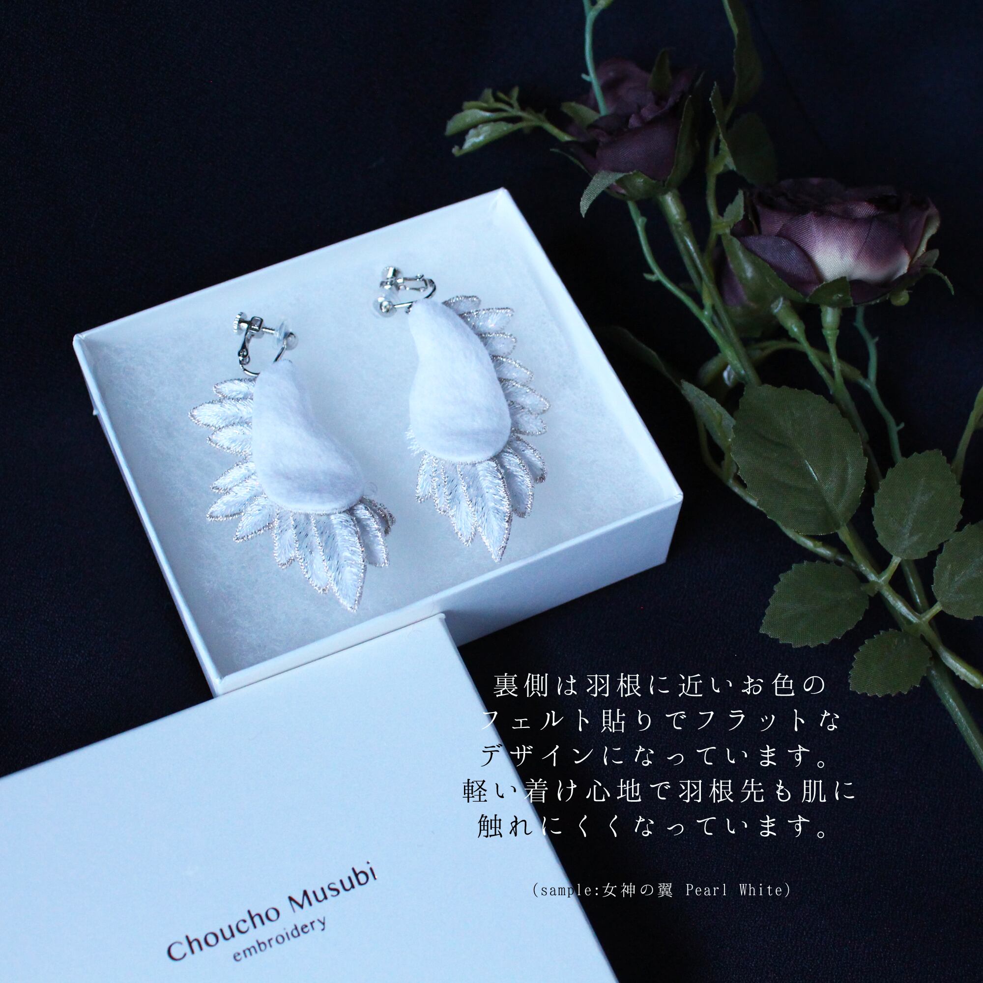 【受注制作】立体刺繍/女神の羽根*翼イヤリング/ピアス*全3色