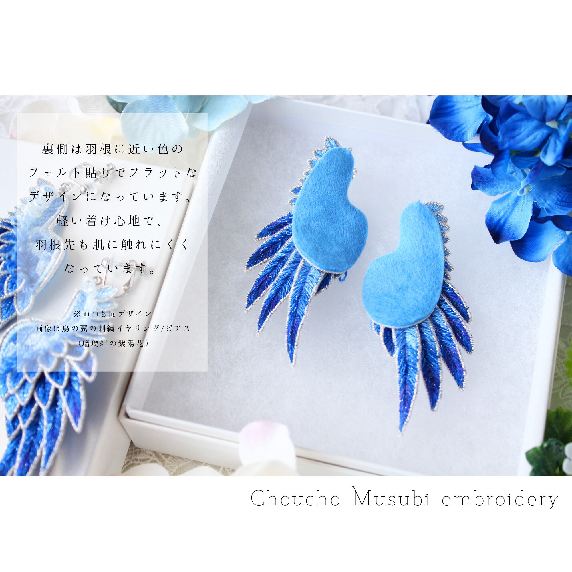 喜鵲羽翼刺繡耳夾/立體刺繡/鳥翼飾品/カササギの翼の刺繍イヤリング